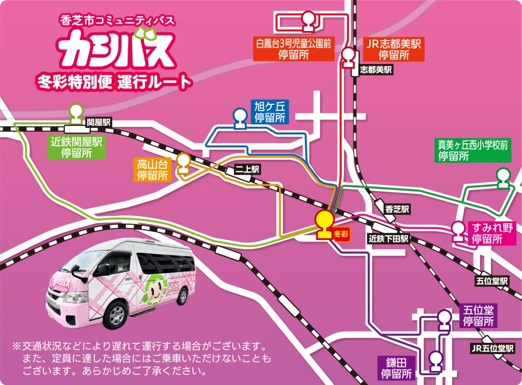 香芝市が運行しているコミュニティバス「カシバス」が冬彩開催日に無料でご乗車いただけます。この機会にぜひご利用ください。