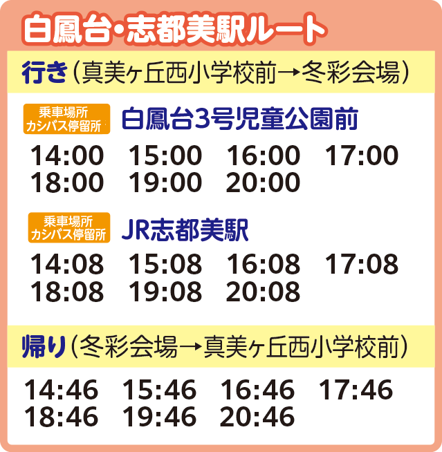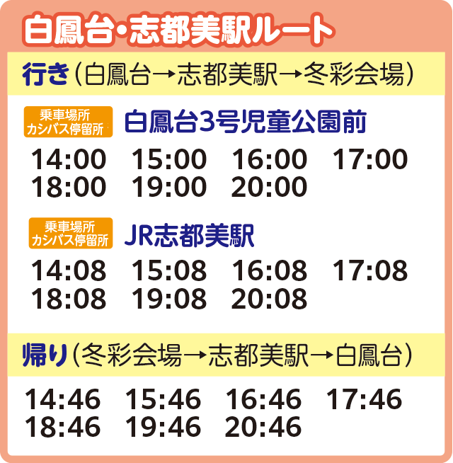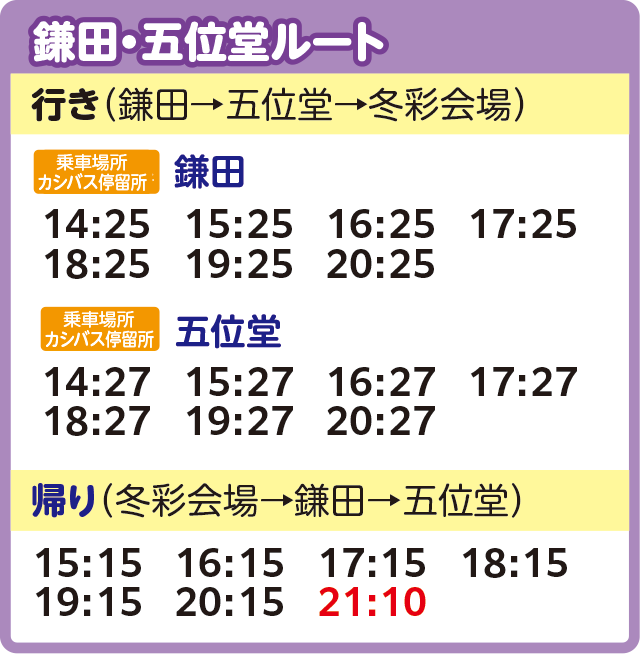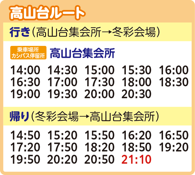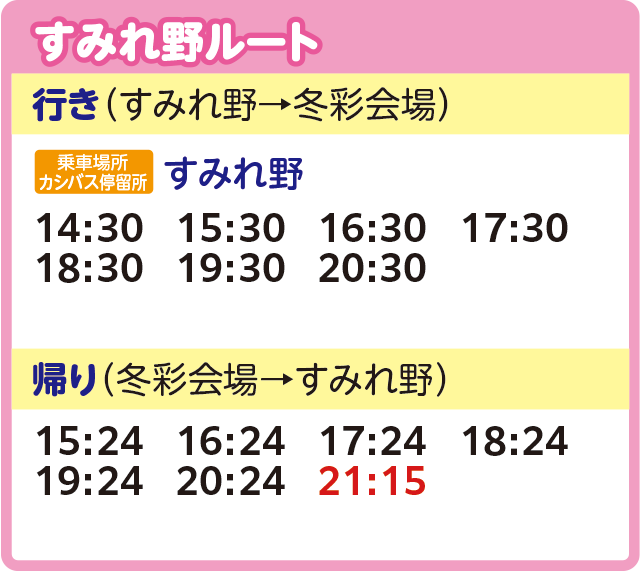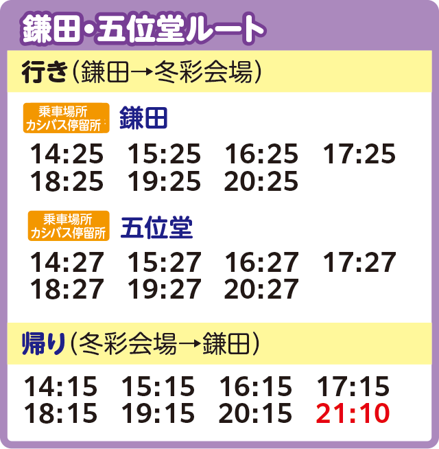 ※交通状況などにより遅れて運行する場合がございます。また、定員に達した場合にはご乗車いただけないこともございます。あらかじめご了承ください。