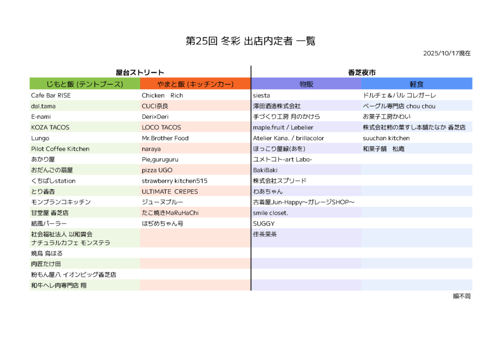 第25回 冬彩「屋台ストリート」および「香芝夜市」にご応募いただいた皆さま、