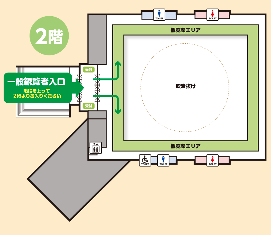 観覧をご希望の方は、直接、2階 観覧席へお進みください。